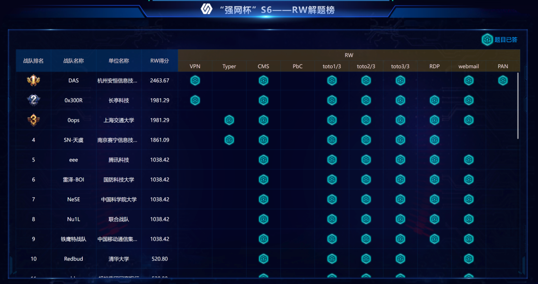 8月20-21日,安恒信息DAS战队征战第六届“强网杯全国网络安全挑战赛”线下赛,在众多战队中脱颖而出,勇夺一等奖(总分第四),其中在RealWorld(基于实网软件/设备漏洞设置的赛题)分项赛中以绝对优势排名第一