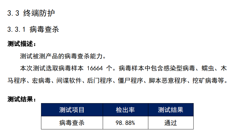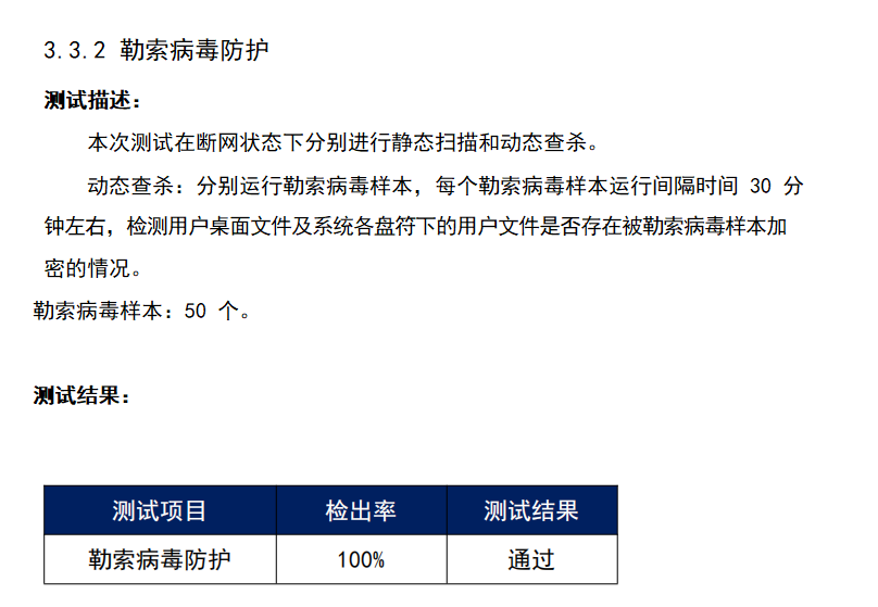 评测结果显示,安恒EDR具备强大病毒防护能力,安恒EDR在综合病毒样本检测中,对数万个各类型病毒样本的查杀率高达98.88%,在勒索病毒专项防护测试中查杀率高达100%,证明安恒EDR能够有效的防御勒索病毒,为用户的文件安全与数据安全提供有力保障。