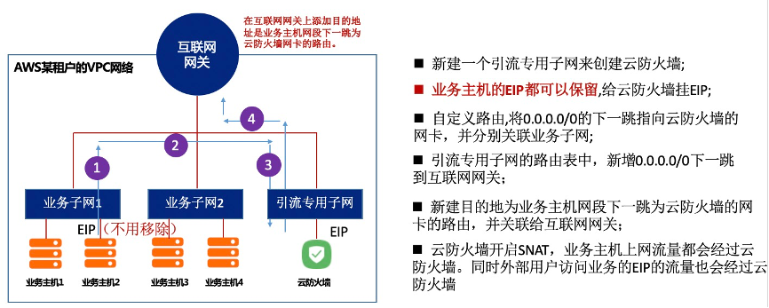 AWS引流相对其他云更灵活,无需将业务主机的EIP移除掉,即不用改变租户原来的网络架构。