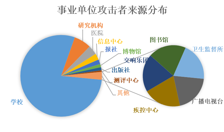 通过上文的分析,事业单位的问题账号占比业相对较高,人生就是搏z6尊龙对这类攻击者做了分析分类,发现其中绝大部分的攻击账号来源是学校,占比78%,涉及54所学校,通常情况下,学校的人员数多,账号基数大,发生风险的概率业相对较高,如图9所示。